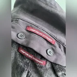 Discover the elegance of this purple grey trench coat with detachable layer for cold weather with hood that also can detach altogether or just the warm layer from Comptoir Des Cotonniers, featuring a tailored silhouette and structured shoulders. The high collar adds a touch of sophistication, making it a versatile choice for any occasion.
