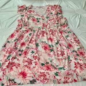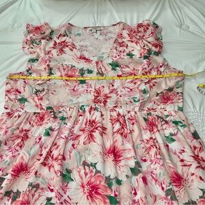 Andree by Unit Pink Floral Ruffle Sleeve Babydoll Dress Size 2X