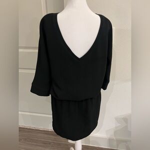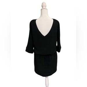 This casual hip mini black dress is perfect for any occasion. Its sleek design offers a timeless look. French brand swildens. Elastic waist. 3/4 inch sleeves