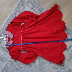 Ishtex Girls Red White Scalloped Peter Pan Collar Dress Sz6. Adorable long sleeve dress with red and white stripes accents and scallops along hemline. Gently worn. Smoke-free/pet-free home.