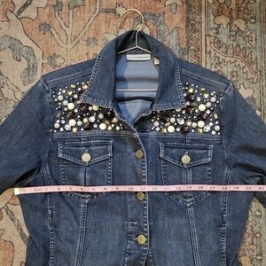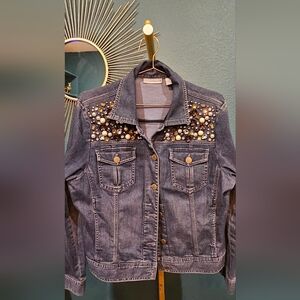 Chico's Blue Jean Jacket with Gold and Silver Embellishments