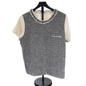 J.Crew Silk-Blend Tweed-front Tee w/Cotton Jersey Back Black/Ivory/Cream Women S