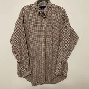 Ralph Lauren Men's Blake 100% Cotton Brown Small Checkered Shirt size L