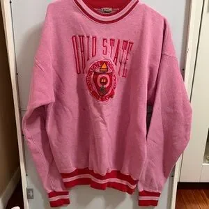 Stay cozy and stylish with this Ohio State University pink crew neck sweater. Perfect for showing your school spirit.