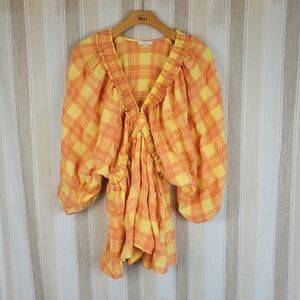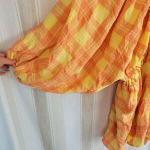 Mable Long Sleeve Bubble Sunshine Romper Plaid Orange Yellow Size Medium