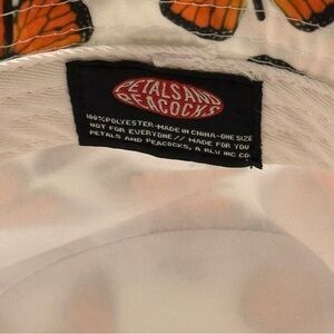 Stylish bucket hat with vibrant orange butterfly print. Features Petals and Peacocks logo. Easy to fold up and toss in any bag for easy access while on the go.