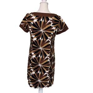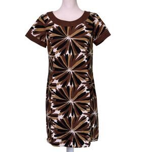 boden dress scoop neck brown and white flower design womens size 8 R knee length