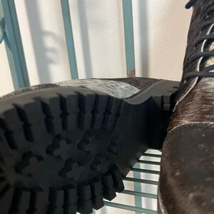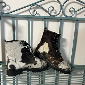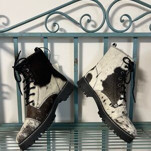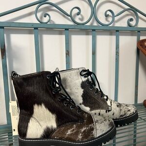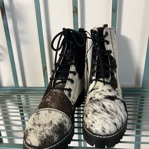 New Genuine Cowhide & Leather Bootie Fur combat ankle boot black white size 8