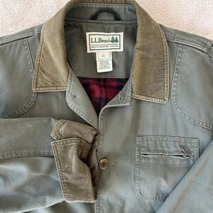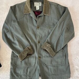LL Bean Original Field Coat Barn Green With Red Plaid Liner Olive Large
