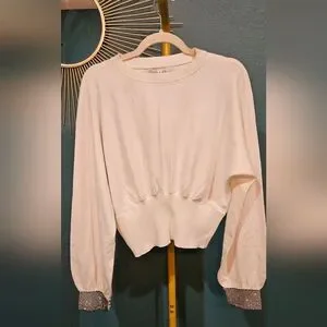 Guess Cream Blouse with Embellished Cuffs