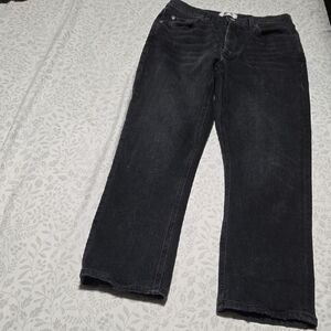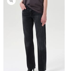 Chic and modern straight leg jeans. Dark gray hue for versatile styling. Perfect for casual or dressy looks.