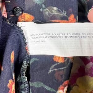 Mango MNG collection black floral sheer button down blouse shirt top size Medium