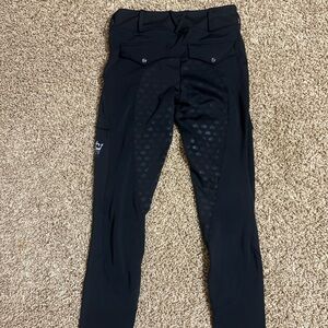 Stylish black riding pants with subtle detailing. Perfect for equestrian activities.