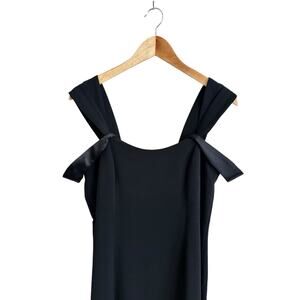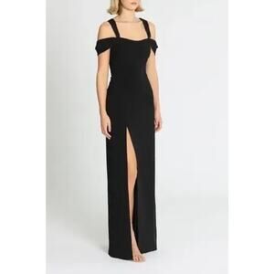 Halston Heritage Cold Shoulder Fitted Crepe Gown Thigh High Slit in Black Size 6