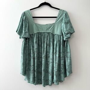 Free People Sunrise To Sunset Babydoll Top Malachite Green Sz XL