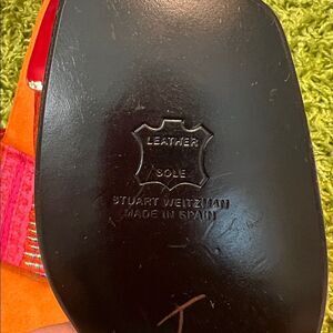 ♥️ STUART WEITZMAN Vintage Leather Orange Red Slip on Open Toe Sandals size 8