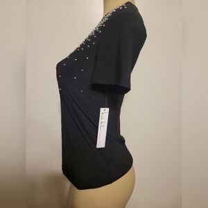 Elegant black women's top with stunning embellishments. Perfect for a night out or special occasion.