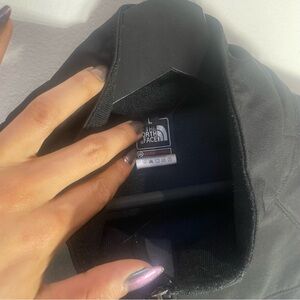 Sleek black design with durable fabric. Features multiple zip pockets. Ideal for outdoor activities. Fits a small medium or could be a men’s small