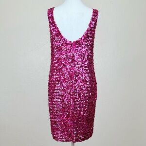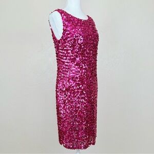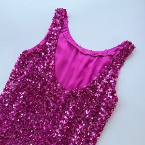Vintage 1980s Night Line Silk Barbie Pink Sequin Sleeveless Dress Size 10 M