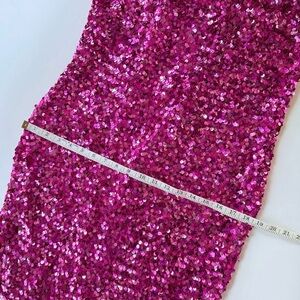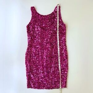 Vintage 1980s Barbie pink silk fully sequined dress by Night Line. Hidden back zip closure with a low scoop back, and sleeveless. Vintage size 10, in my opinion it fits more like a contemporary 6 to 8. Gently used with a couple of areas with a few missing sequins. Gorgeous dress.