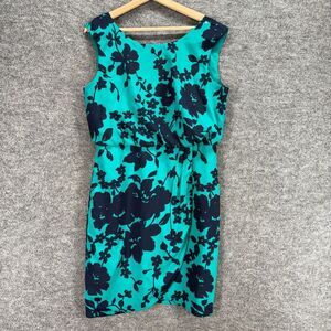 Ann Taylor Dress Women 10 Blue Floral Sheath Midi Lined Zipper Sleeveless Casual