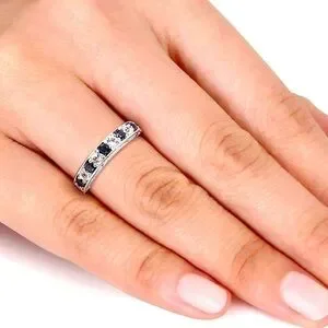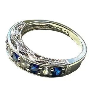 Sterling silver band with blue and white sapphire stones.