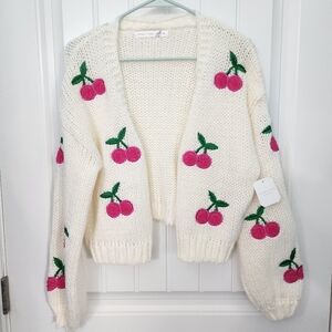 NEW! Altar'd State Cherry Embroidered Cardigan in Ivory, Size XS