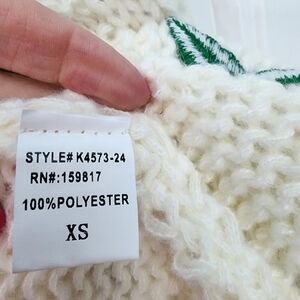 Stay cozy and stylish with this charming white sweater featuring playful cherry embroidery. Perfect for adding a touch of fun to your wardrobe.