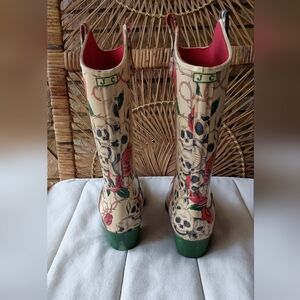 Nomad Yippy Western Rain Boots Skulls and Roses Rubber Cowgirl Pull-On Boot Sz 11