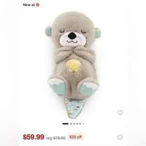 Musical otter plush sound machine with “breathing” motion for babies from birth +
