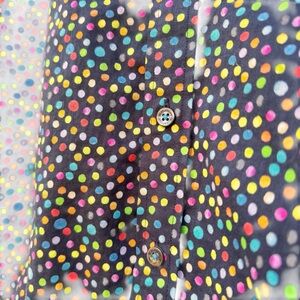 Bugatchi shirt men, rainbow polka dot shirt, designer party shirt, statement dress shirt, contrast collar button down, menswear vibrant print