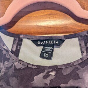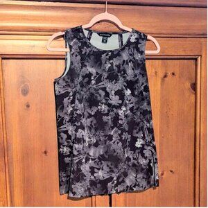 EUC, worn twice. Athleta Lumen Zephyr Refined Tank Top. Black Floral Gray, size XXS, stretchy. Very versatile, can be dressed up and worn under a blazer or can be worn for workouts.