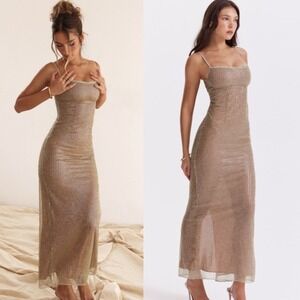 LIMITED EDITION House of CB 'Alondra' Cafe Au Lait Beaded Maxi Dress NWOT size S