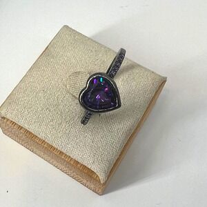 Heart Cut Purple Stone Black Ring Women's Fashion Jewelry Cocktail Size 7.75