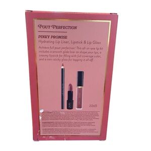 Laura Geller pout perfection lip kit. Includes pinky promise lip liner, lipstick, and gloss. Smooth glide for shaping lips. Full coverage color.
