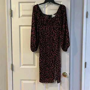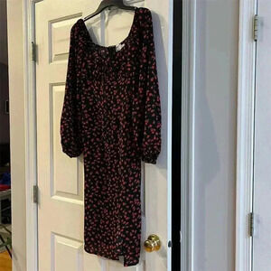 Turn heads at your next event with this stunning Princess Polly floral midi dress. The elegant black fabric is adorned with a delicate floral pattern, creating a timeless look perfect for any party or cocktail occasion. The square neckline and long sleeves add a touch of sophistication, while the side slit offers a hint of allure. Whether you're attending a wedding, a night out with friends, or a special celebration, this dress is your go-to choice. Size 4 and in excellent pre-owned condition, it's ready to make you shine.