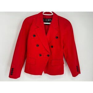 Vintage Escada Germany 80’s Scarlet Red Silky Cotton Fitted Blazer Jacket Sz S