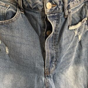 Tgla Blue Denim Light Wash Cuffed Jeans Button Fly Women’s Size 30 Distressed