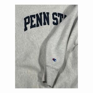 The Vintage Penn State Nittany Lions PSU Champion Sweatshirt in size Medium is a gray sweatshirt featuring the official team logo of the Penn State Nittany Lions. Made by Champion, this officially licensed sweatshirt is perfect for football fans and supporters of the team. The design and color make it a stylish choice for men looking to represent their favorite college team in a classic and comfortable way.