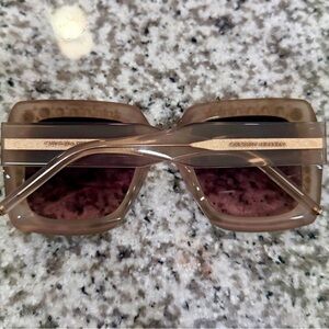 These Carolina Herrera stylish sunglasses feature a chic crystal-embellished frame in a soft cream hue. Perfect for adding a touch of glamour to any outfit. Comes with box. Brand new, never worn. They are gorgeous!