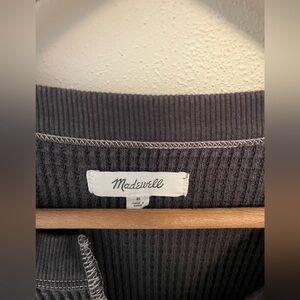 Madewell Waffle Split Neck Crop T-Shirt Thermal Top - S