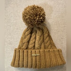Michael Kors Brown Cable Knit Hat with Pom-Pom