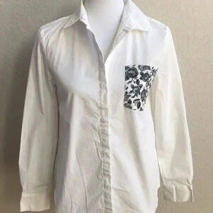 Crisp White button down shirt with floral pocket