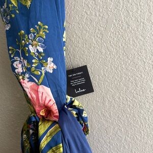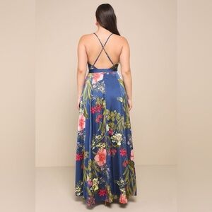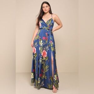 NEW Lulus Still the One Blue Floral Print Satin Maxi Dress Sz XS