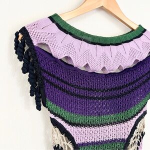 JEAN PAUL GAULTIER S/S 2008 RTW Runway Crochet Knit Tassel Cutout Top in Purple