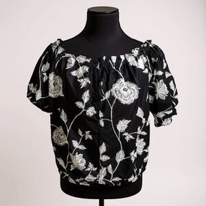 Who What Wear Black Embroidered Off-Shoulder Blouse Size N Floral Top