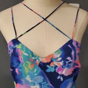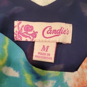 Add flair with this colorful Candie's top Features a lively floral design and crisscross straps. Perfect for casual wear.