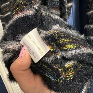 ModCloth Black Multicolor Metallic Chenille Fuzzy Long Cardigan Size L