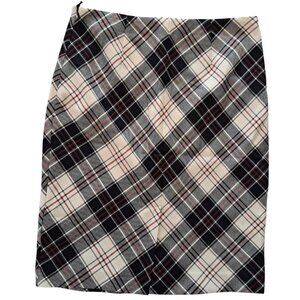 Brooks Brothers Black White Plaid Wool Blend Pencil Skirt Size 6