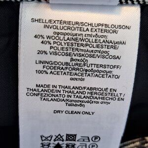 Excellent condition wool blend skirt from Brooks Brothers. Black and white in color, pencil style, with side zip closure. Wool blend fabric. Size 6. Measures about 15.5 inches across the waist and 22 inches long. Lightweight.